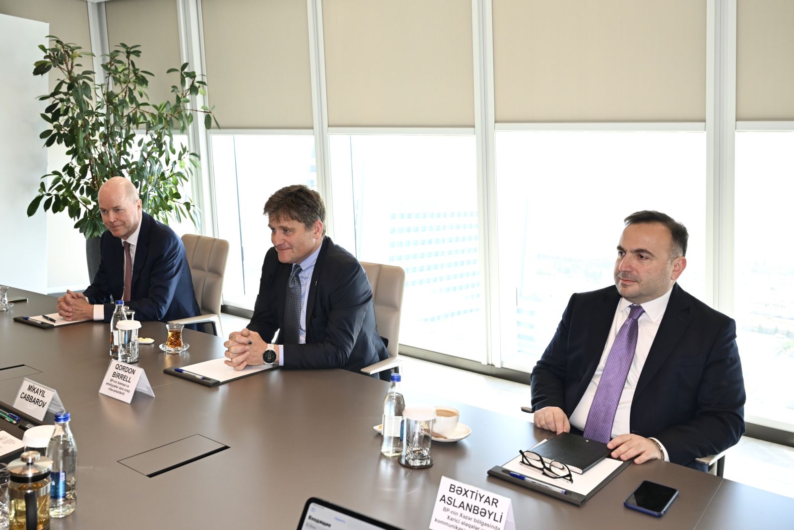 Министр экономики Азербайджанской Республики Микаил Джаббаров и президент SOCAR Ровшан Наджаф провели встречу с исполнительным вице-президентом bp по добыче и эксплуатации Гордоном Бирреллом, находящимся в Азербайджане для участия в 30-й Бакинской энергетической неделе.