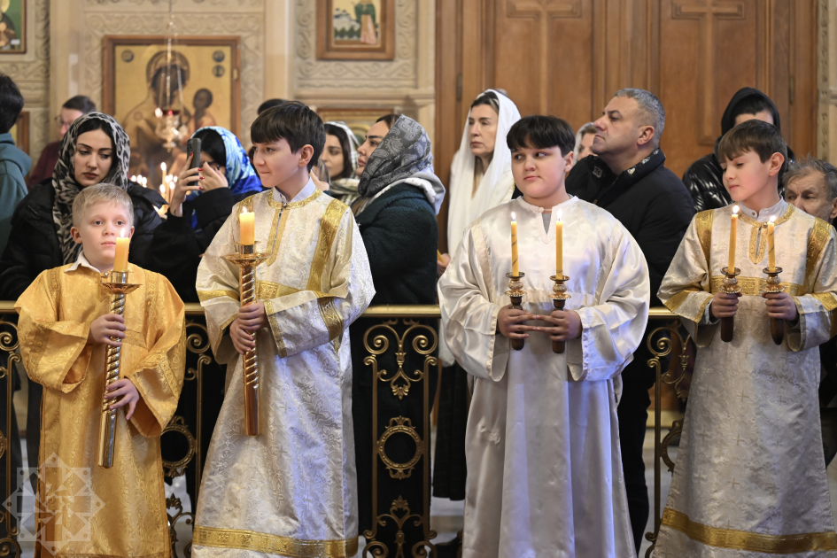 В Рождественскую ночь епископ Алексий совершил Божественную литургию в Кафедральном соборе Святых Жен-Мироносиц.