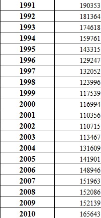 Мы, в свою очередь, изучили статистику рождаемости по стране, начиная с 1970 года. К сожалению, она демонстрирует устойчивую тенденцию к снижению.