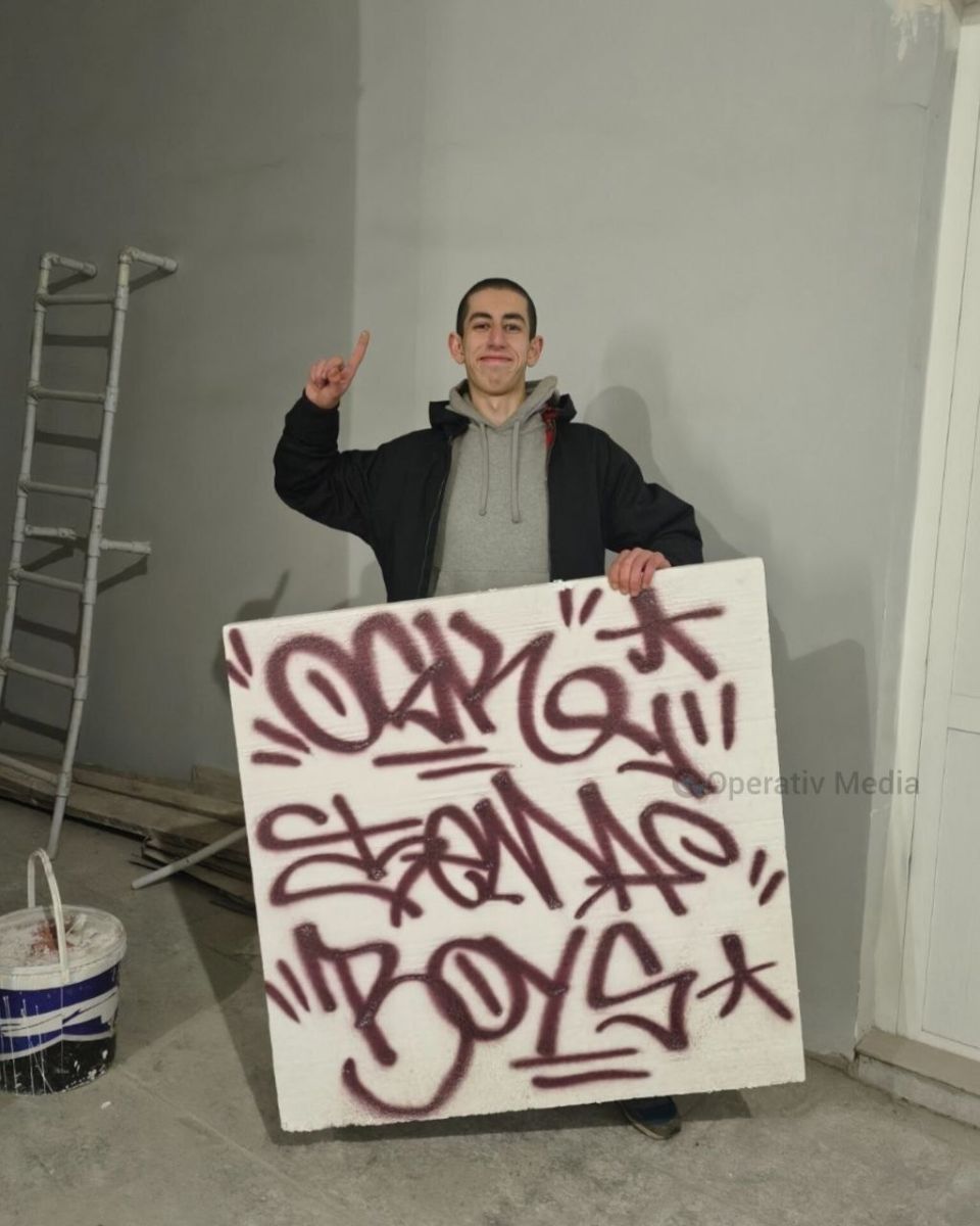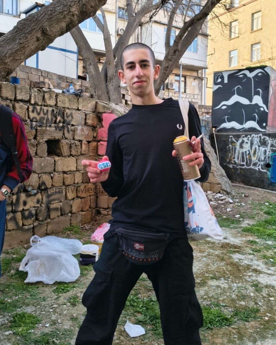 Появились фотографии лиц, нарисовавших граффити на фасаде Киноцентра «Низами».