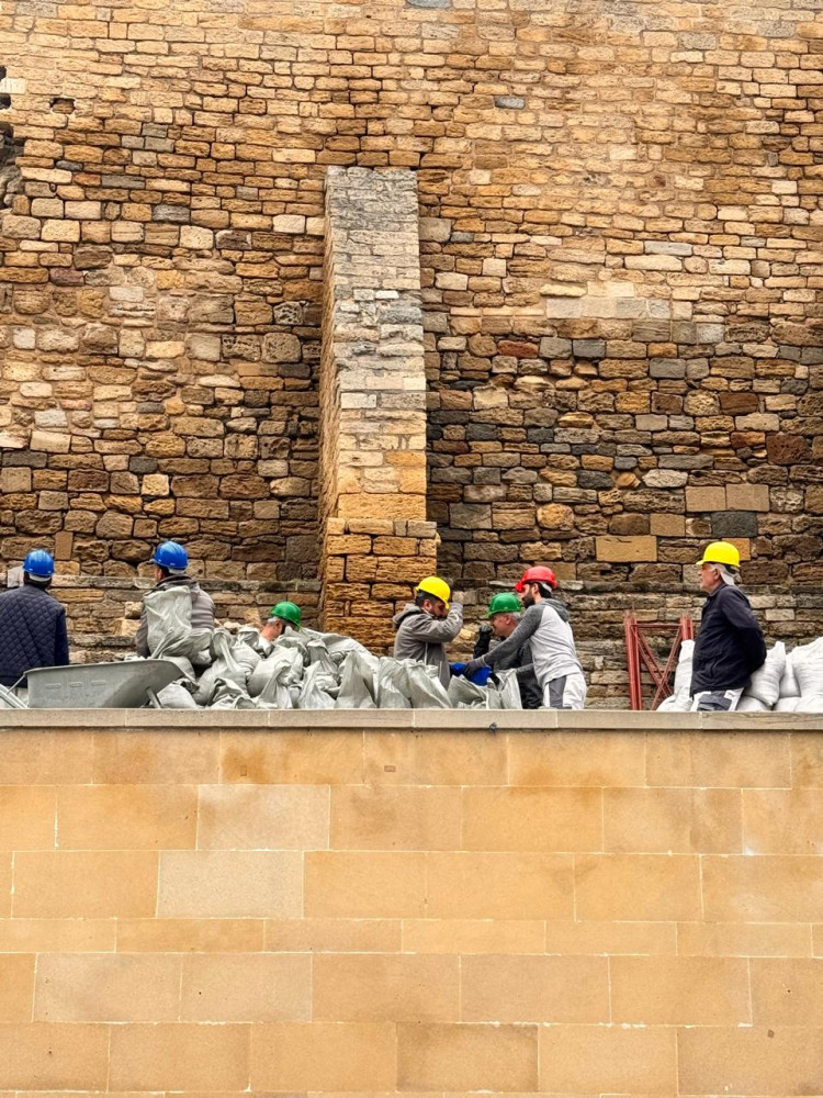 Началось восстановление обрушившейся части крепостной стены в Ичеришехер - ФОТО