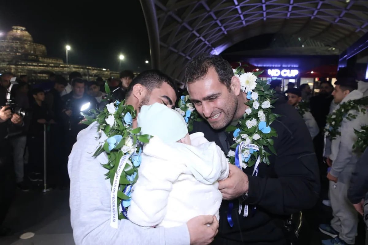 В Международном аэропорту Гейдар Алиев состоялась торжественная встреча сборной Азербайджана по греко-римской борьбе, которая, завоевав на чемпионате Европы в Албании две золотые и три бронзовые медали, заняла первое место в командном зачете и стала чемпионом Европы.