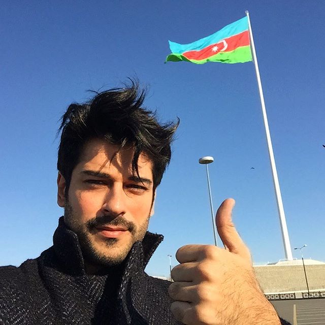 О том, что он уже в Баку, звезда «Великолепного века» сообщил, поделившись в Instagram Stories нижеприведенной фотографией.