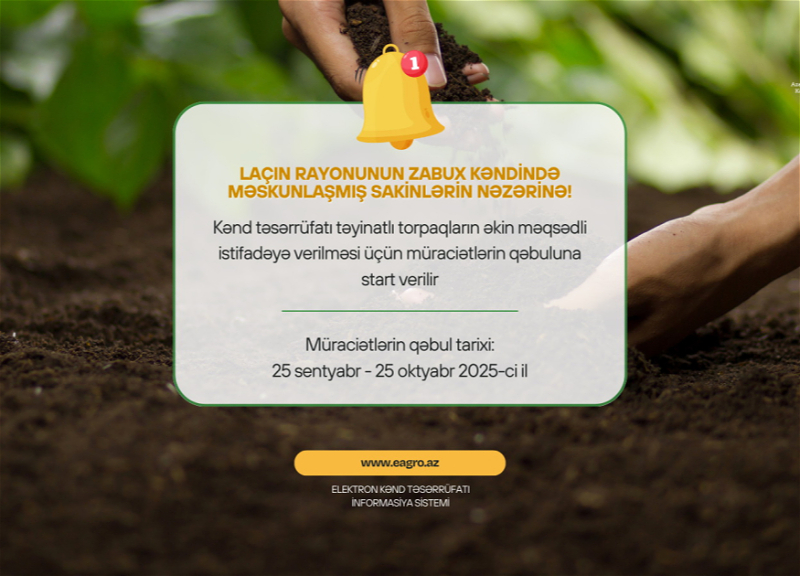 Laçın rayonu Zabux kəndində torpaqların əkin məqsədli istifadəyə verilməsi üçün müraciətlərin qəbuluna başlanır