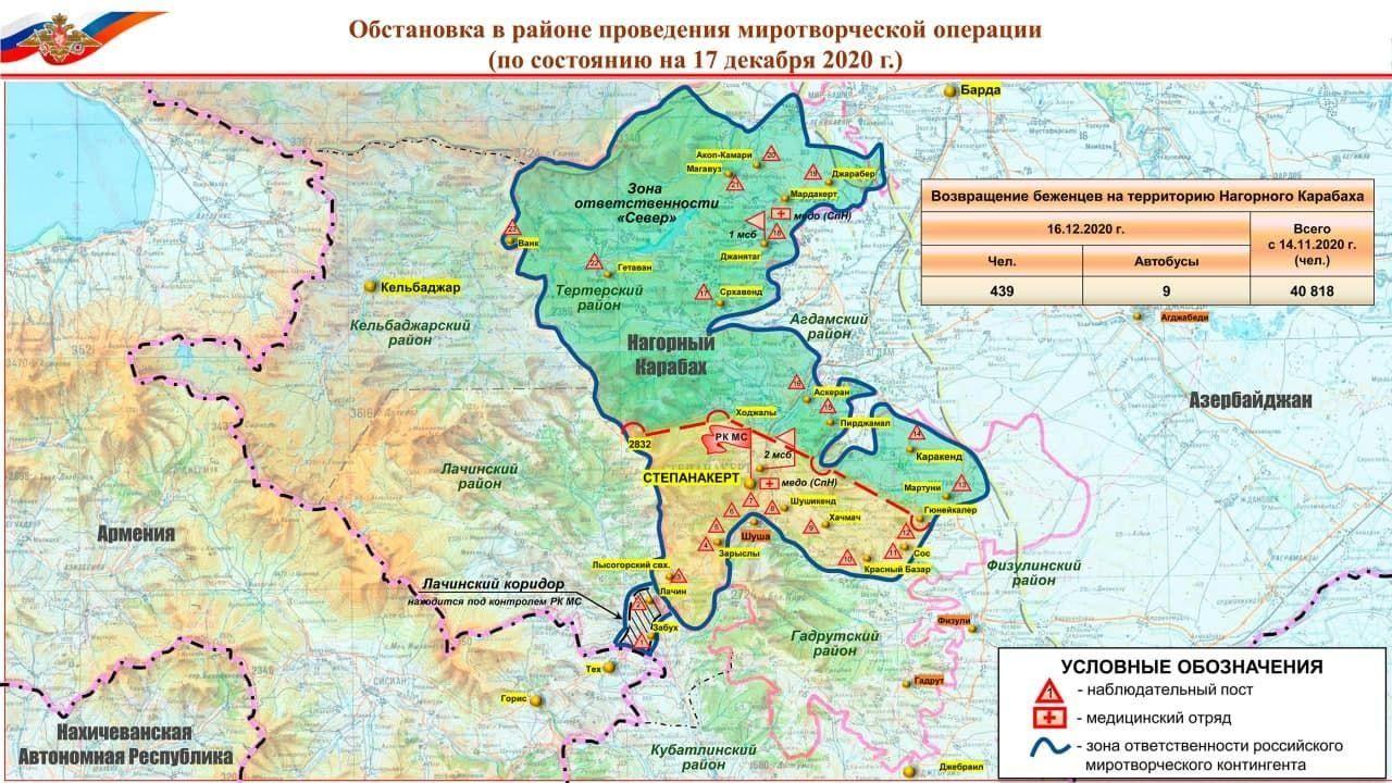 Qarabağda Rusiya sülhməramlıların yerləşdirilməsinin 17 dekabrda yeni xəritəsini dərc edib.