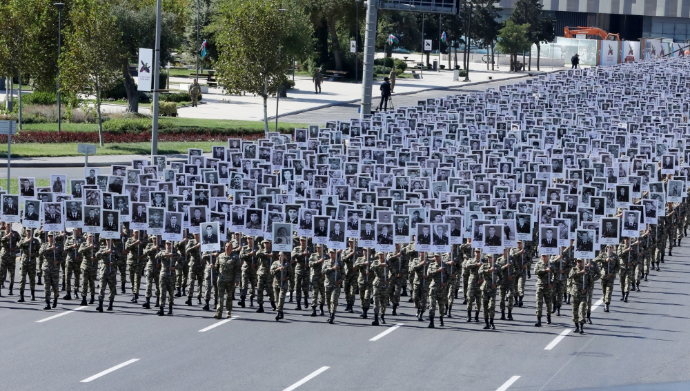 Reportaja Prezident İlham Əliyev və Birinci xanım Mehriban Əliyevanın başçılıq etdikləri, iştirakçıların əllərində həlak olan hərbçilərin və mülki vətəndaşların, Ermənistan silahlı qüvvələrinin Gəncəyə gecə endirdikləri raket zərbələrinin qurbanları olan uşaqların fotoları əks olunan plakatları daşıdıqları Vətən müharibəsi şəhidlərinin əziz xatirəsinə həsr olunan yürüş ümumiyyətlə daxil edilməyib.