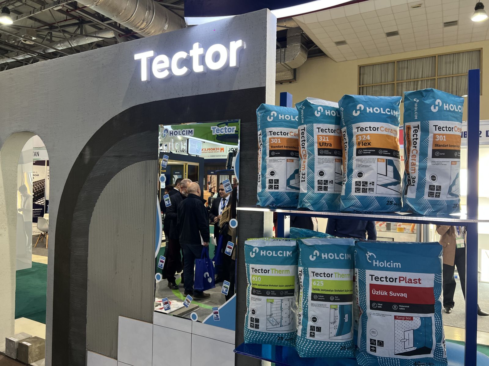 Eyni zamanda Holcim geniş istifadə sahəsinə malik TECTOR quru qarışıqları və yapışdırıcılarını təqdim edir. Bu məhsullar döşəmə və kafel yapışdırılması, istilik və su izolyasiyası, dekorativ fasadlar və təmir işləri üçün ideal həlldir.