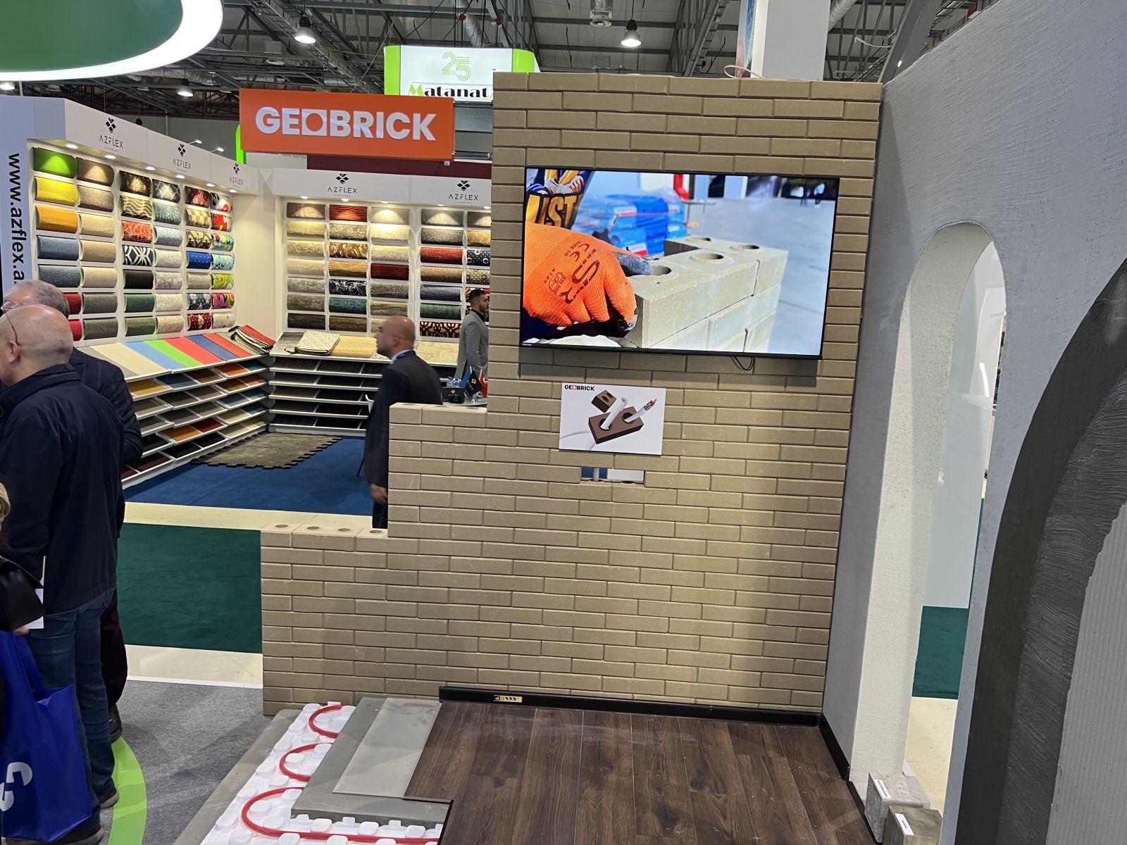 Bundan əlavə, Holcim innovativ və ekoloji GEOBRICK kərpicini nümayiş etdirir. Təbii əhəngdaşı və sementdən hazırlanan bu kərpicin hamar səthi suvağa olan tələbatı azaldır, tikinti sürətləndirir və divarlara səliqəli görünüş verir. Bu material sayəsində 120 m² sahəsi olan evin divarlarını cəmi altı həftəyə tamamlamaq mümkündür.