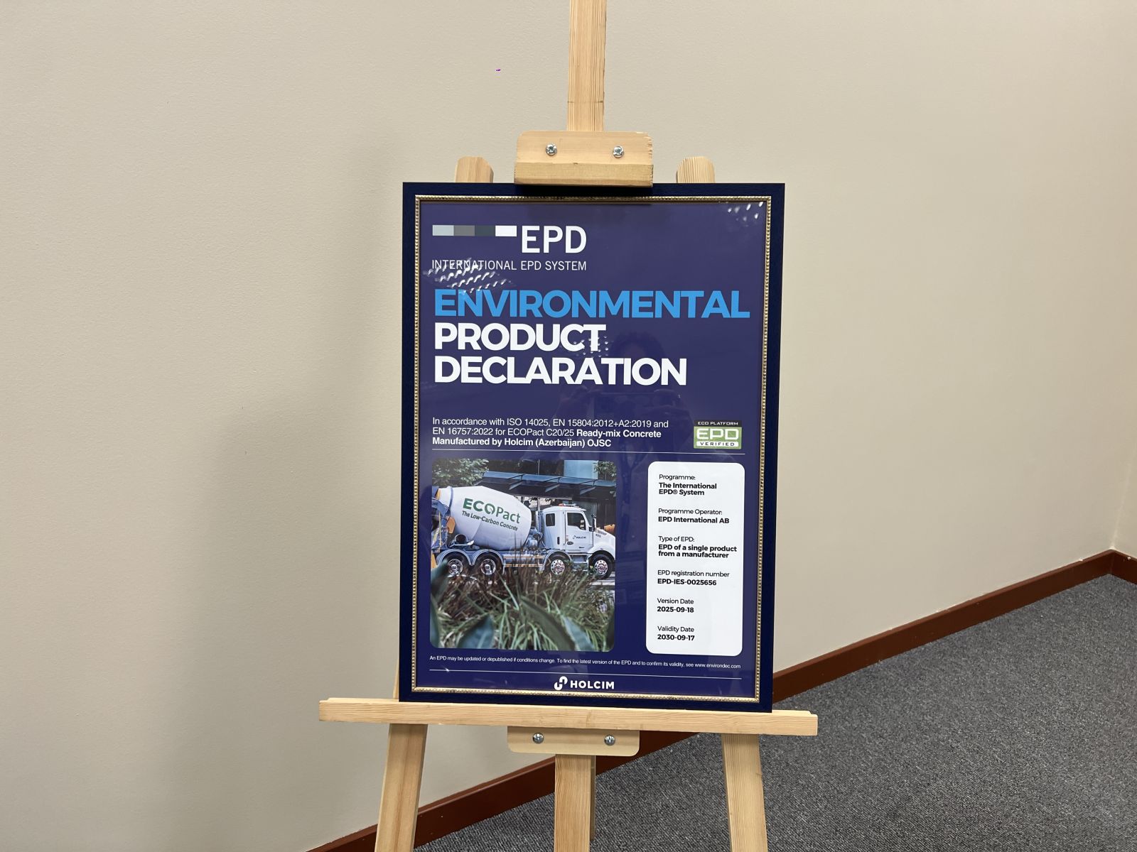 “Holcim Azərbaycan tikinti materialları istehsalı sahəsində müstəqil beynəlxalq auditorlar tərəfindən təsdiqlənmiş “EPD” sertifikatını - yəni Məhsulun Ekoloji Bəyannaməsini əldə edən ilk şirkətdir,” - deyə Holcim Azerbaijan-ın kommersiya direktoru Namig Tapdıgov qeyd etdi. “Bu sertifikatın əldə olunması bizim üçün Azərbaycanda tikinti sənayesinin “yaşıl” inkişafına dəstəyimizin təsdiqidir.”