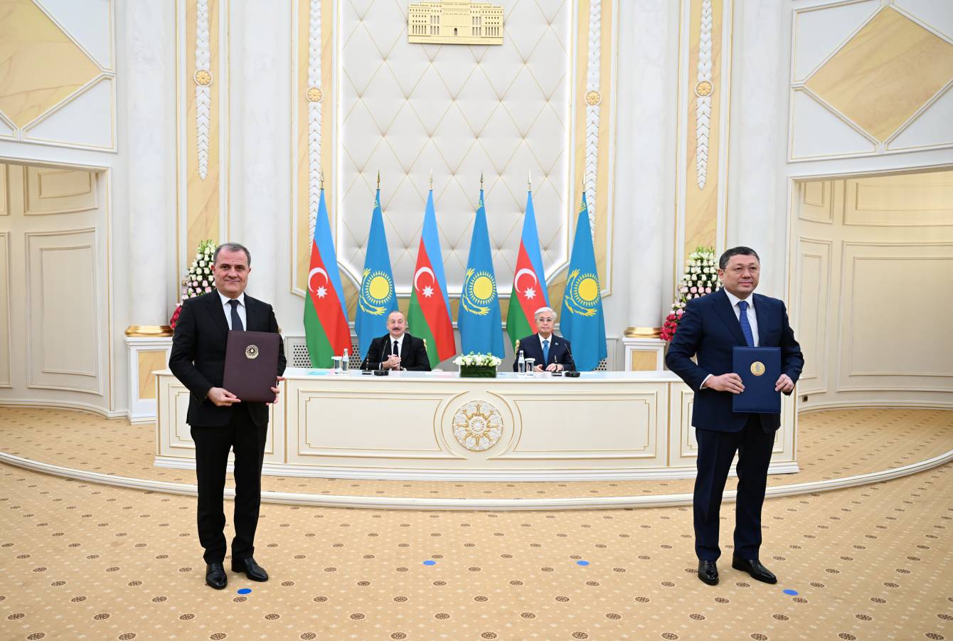 Sonra Azərbaycan-Qazaxıstan sənədləri mübadilə olundu.
