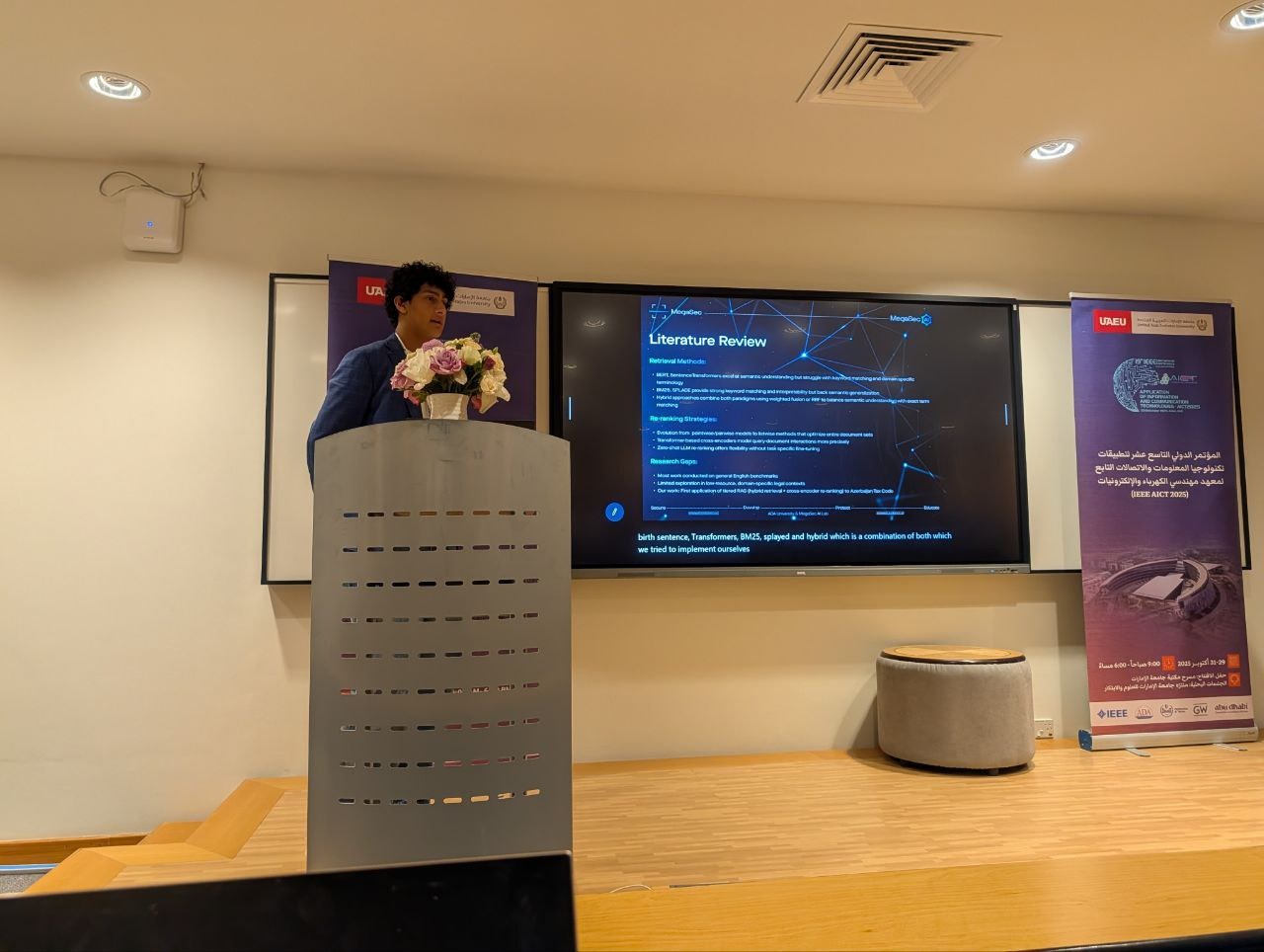 Birləşmiş Ərəb Əmirliklərinin Əl-Əyn şəhərində informasiya və kommunikasiya texnologiyalarının tətbiqi ilə bağlı keçirilən 19-cu IEEE Beynəlxalq “Application of Information and Communication Technologies” (“AICT 2025”) konfransında azərbaycanlı məktəblinin də əməyinin olduğu təqdiqat təqdim edilib.