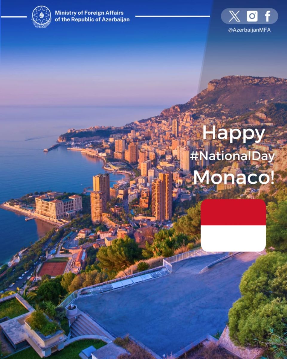 Azərbaycan Xarici İşlər Nazirliyi (XİN) Monakonu Milli Günü münasibətilə təbrik edib.