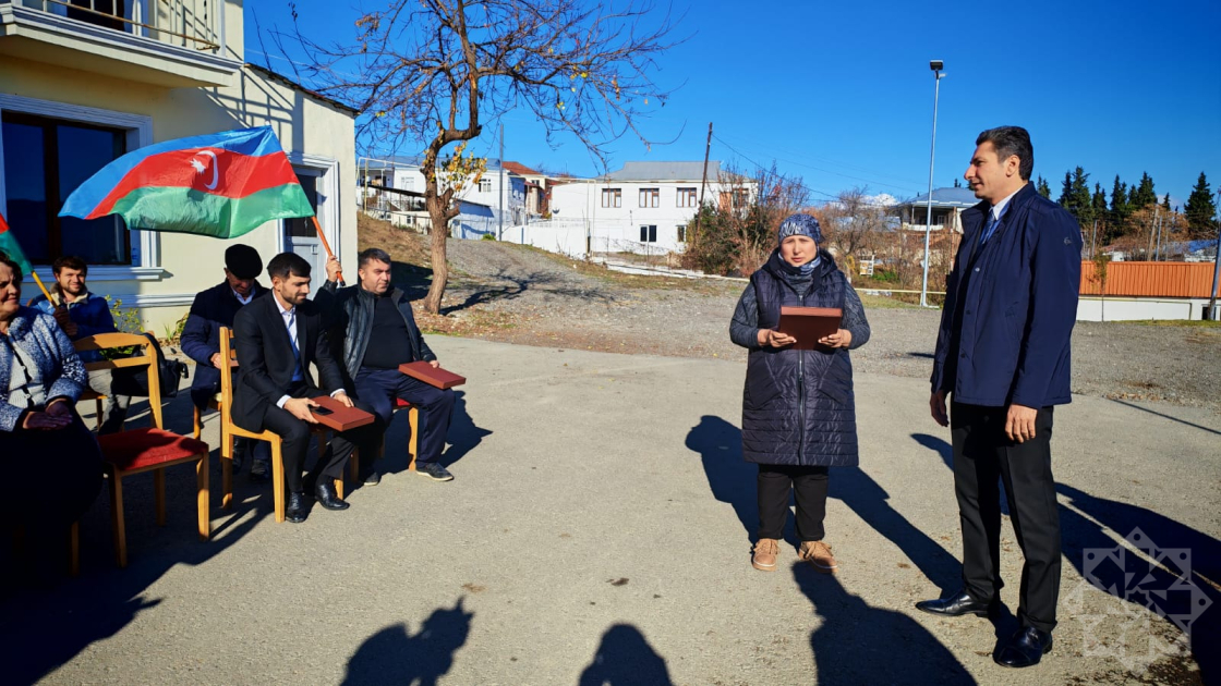 Bu gün köç karvanı ilə Xocalı rayonunun Badara və Ballıca kəndlərinə çatan ailələrə yeni evlərinin açarları təqdim olunub.