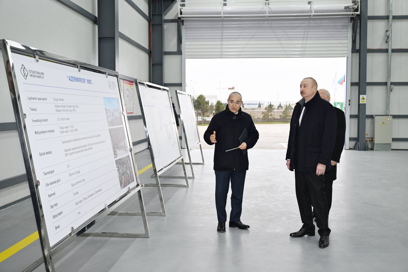 Azərbaycan Respublikasının Prezidenti İlham Əliyev yanvarın 27-də Sumqayıt Sənaye Parkında “Azermirror” MMC-nin güzgü vərəqələrin istehsalı zavodunun açılışında iştirak edib.