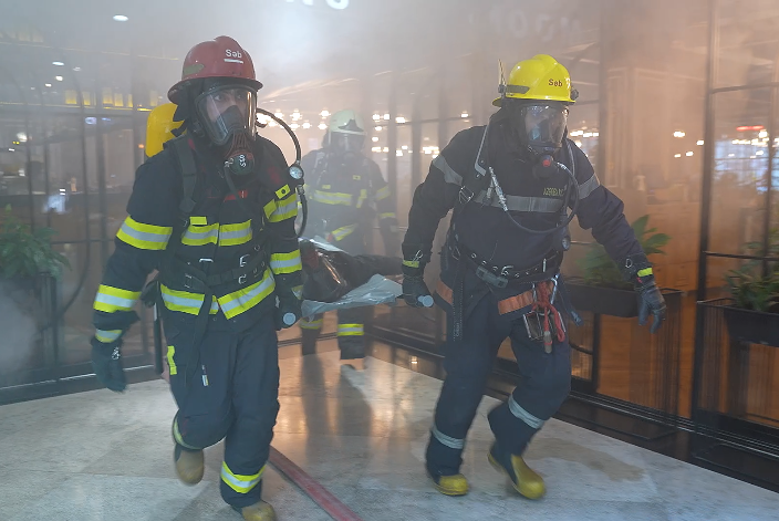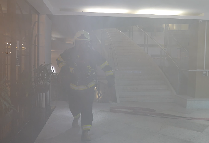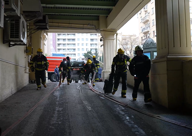 Təlimin praktiki hissəsində şərti yanğınla əlaqədar “Həyəcan” siqnalı verildikdən sonra Dövlət Yanğından Mühafizə Xidmətinin yanğından mühafizə bölmələri operativ qaydada “hadisə yerinə” çataraq, “yanğınla mübarizə” tədbirlərinə başlayıblar. Şərti yanğın baş vermiş ticarət mərkəzində təxliyə planına uyğun olaraq vətəndaşların təhlükəsiz yerə təxliyəsi həyata keçirilib, şərti xəsarət almış şəxslərə “ilkin yardım göstərilib”, “yanğın qısa müddətdə söndürülüb”.