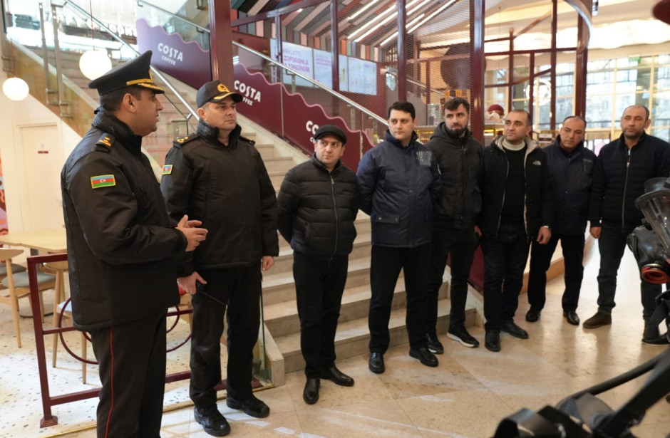 Fövqəladə Hallar Nazirliyinin Dövlət Yanğından Mühafizə Xidməti Bakı şəhəri, Nəsimi rayonu, Nizami küçəsi, 60 ünvanında fəaliyyət göstərən “Nərgiz” Ticarət Mərkəzində “Fövqəladə hallar zamanı davranış qaydaları və təxliyə” mövzusunda təlim keçirib.