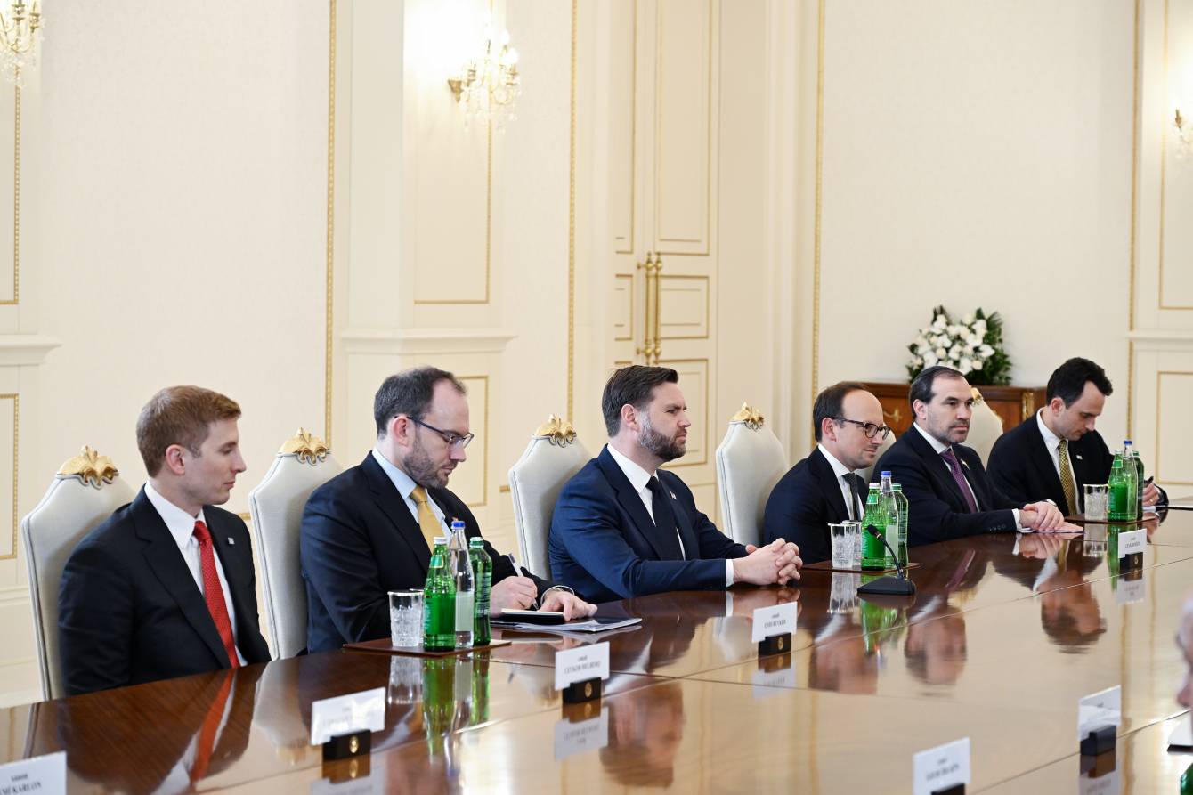 Bakıda Azərbaycan Respublikasının Prezidenti İlham Əliyevin Amerika Birləşmiş Ştatlarının Vitse-prezidenti Ceyms Devid Vens ilə geniş tərkibdə görüşü başlayıb.