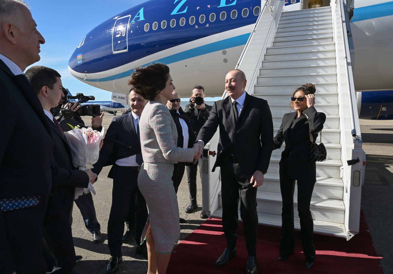 Prezident İlham Əliyevi və birinci xanım Mehriban Əliyevanı Gürcüstanın xarici işlər naziri Maka Boçorişvili və digər rəsmi şəxslər qarşıladılar.