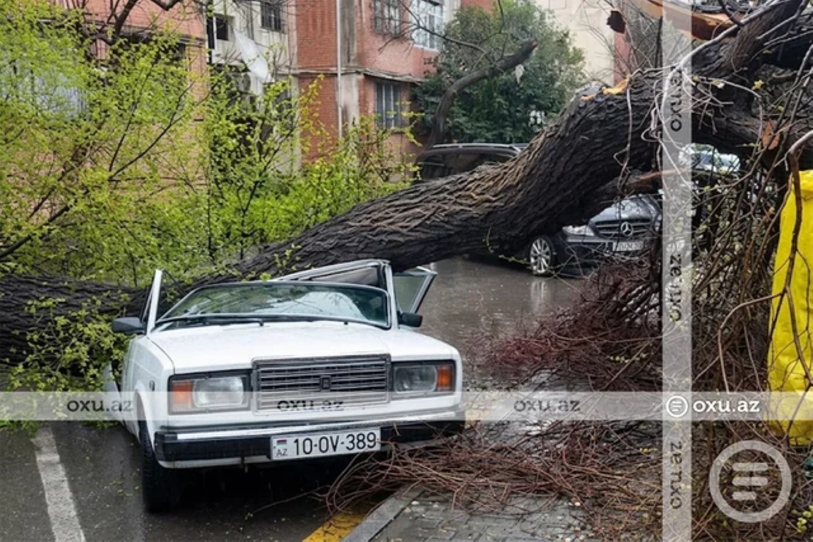 Güclü külək nəticəsində ağac VAZ-2107 markalı avtomobilin üzərinə aşıb. Hadisə nəticəsində xəsarət alan olmayıb, nəqliyyat vasitəsinə ciddi ziyan dəyib.
