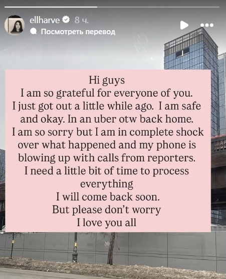 By Thursday evening, Elmina Agayeva stated in her Instagram Stories: "I am so grateful to each of you. I was just released and am now safe; I’m okay. I’m heading home. I’m really sorry, but I’m still in complete shock from what happened, and my phone is blowing up with calls from journalists. I need some time to process everything. I’ll be back soon."