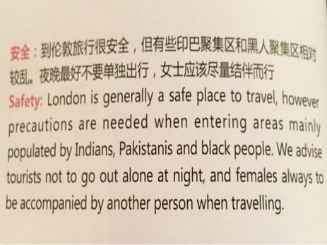 Памятку для китайских туристов в Лондоне назвали расистской