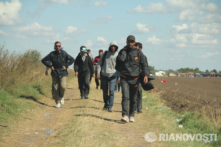 Беженцы разбили лагерь на нейтральной полосе между Сербией и Венгрией