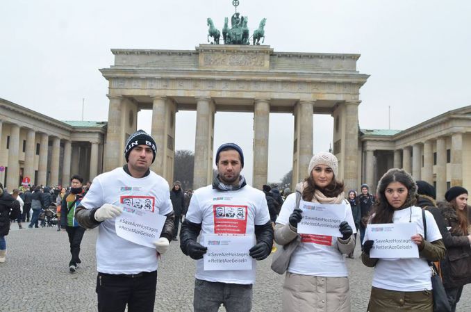 В Берлине прошла акция в поддержку Дильгама Аскерова и Шахбаза Гулиева, взятых в заложники армянами - ВИДЕО