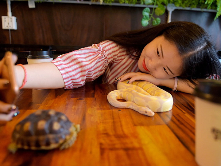В Камбодже появилось кафе, где можно пить кофе со змеями и скорпионами