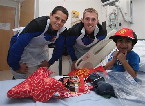 Игроки английского футбольного гранда «Манчестер Юнайтед» навестили детей в несколько больницах Манчестера.