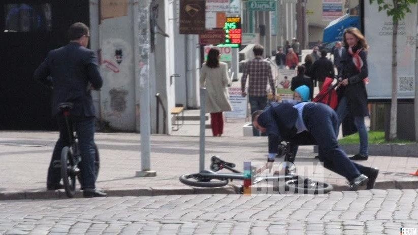 Мэр Киева Виталий Кличко по пути на работу упал с велосипеда.