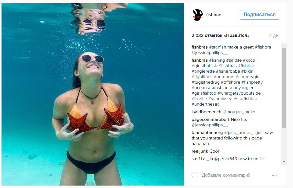 В Instagram даже появился аккаунт, где пользователи публикуют лучшие фотографии обнаженных девушек с рыбьими бюстгальтерами.