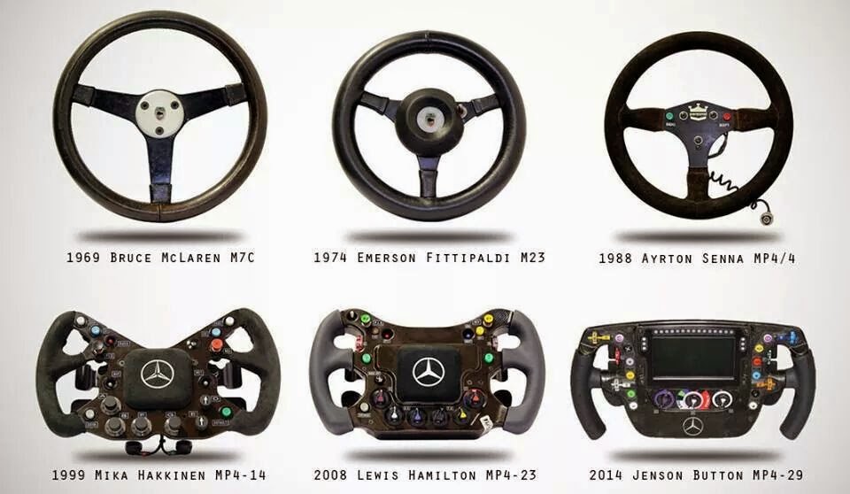 Раньше спидометры, тахометры и прочие датчики в болидах Ф1 располагались на панели, встроенной в переднюю стенку кокпита. Теперь все электронные индикаторы находятся на руле, и поэтому, сегодня с помощью руля пилоты не только управляют болидом на поворотах, но и контролируют работу всех компьютерных систем машины, регулируют её тормозной баланс.