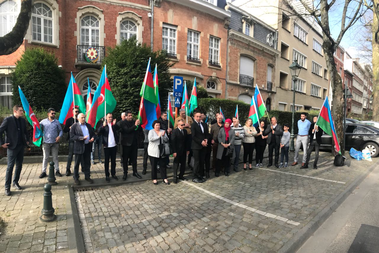 Организованная Европейским азербайджанским конгрессом (ЕАК) и Конгрессом азербайджанцев Бенилюкса (КАБ) акция солидарности азербайджанцев прошла перед посольством Азербайджана в Брюсселе.