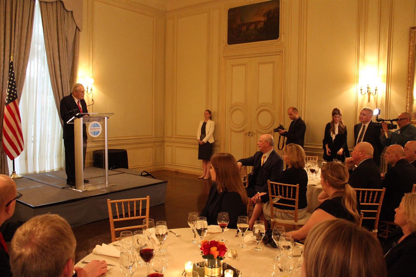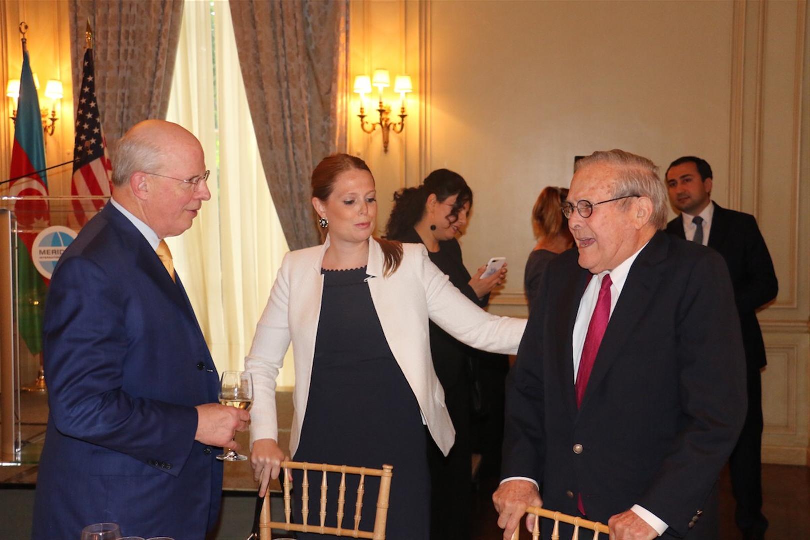 Поприветствовав Дональда Рамсфелда, посол отметил, что он внес особый вклад в развитие американо-азербайджанского партнерства, а возглавляемый им сейчас фонд способствует взаимопониманию в регионе. Дипломат подчеркнул, что Д.Рамсфелд тоже является великой личностью с яркой и плодотворной политической карьерой, проработавшей на самых высоких должностях и влиявшей на общественно-политическую жизнь в стране.