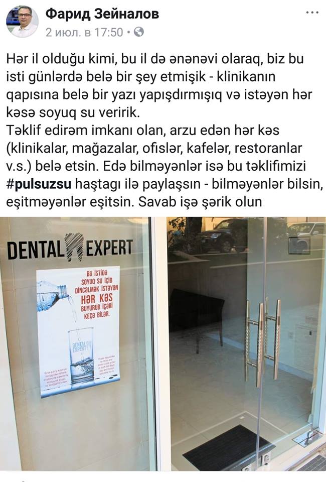 А еще, в связи с приостановкой водоснабжения во многих районах Баку в сети стали отписываться те, которых эта беда миновала – они оставляли свои адреса и предлагали всем, кому необходима вода, приехать к ним и наполнить канистры.