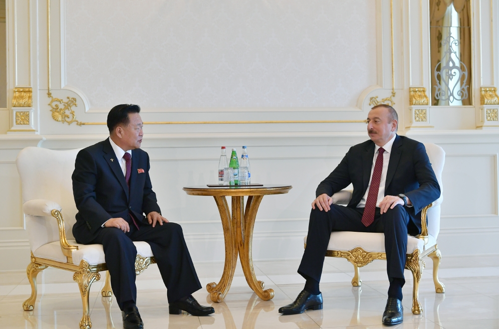 24 октября Президент Азербайджанской Республики Ильхам Алиев принял делегацию во главе с председателем Президиума Верховного Народного Собрания Корейской Народно-Демократической Республики Чхве Рен Хэ.