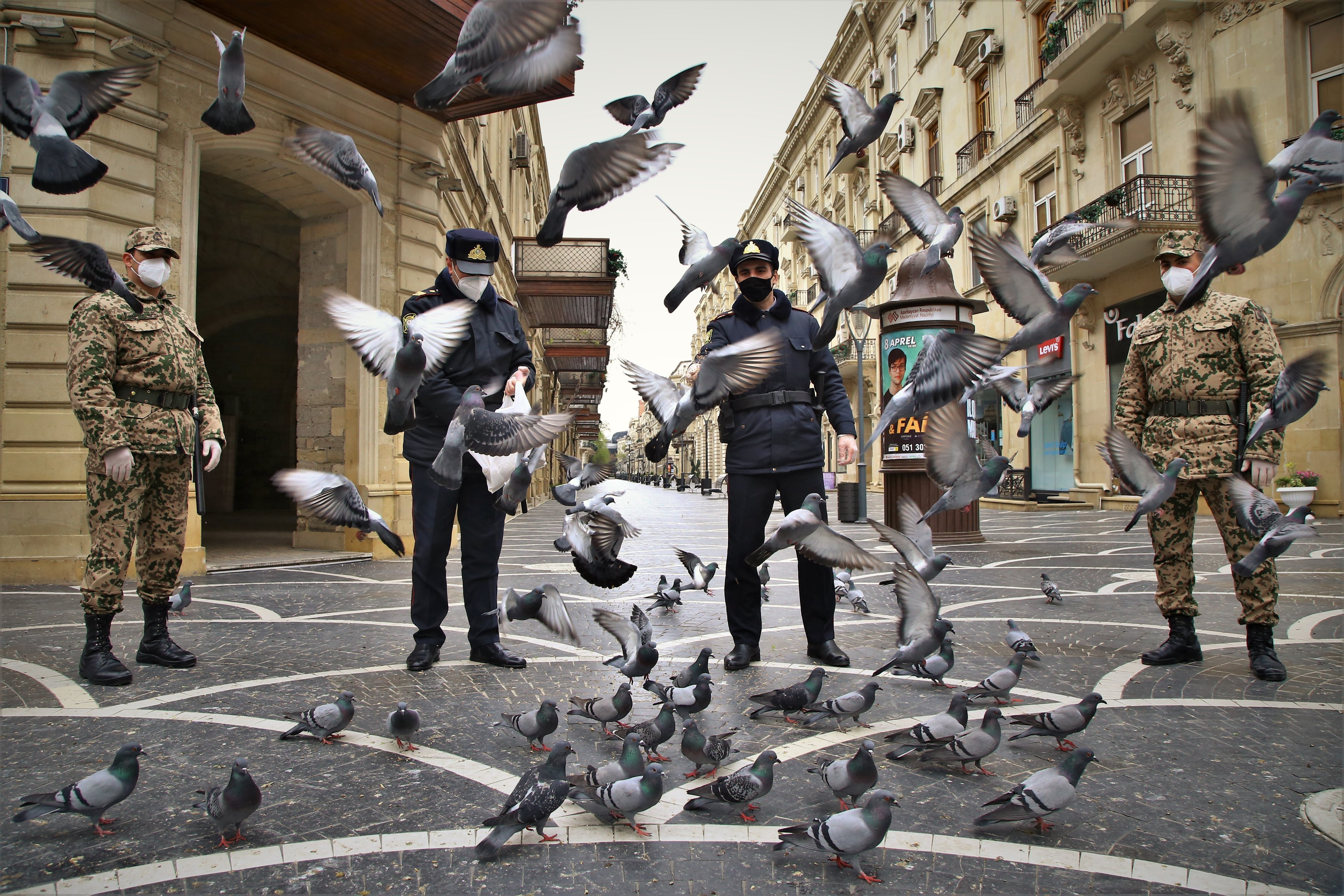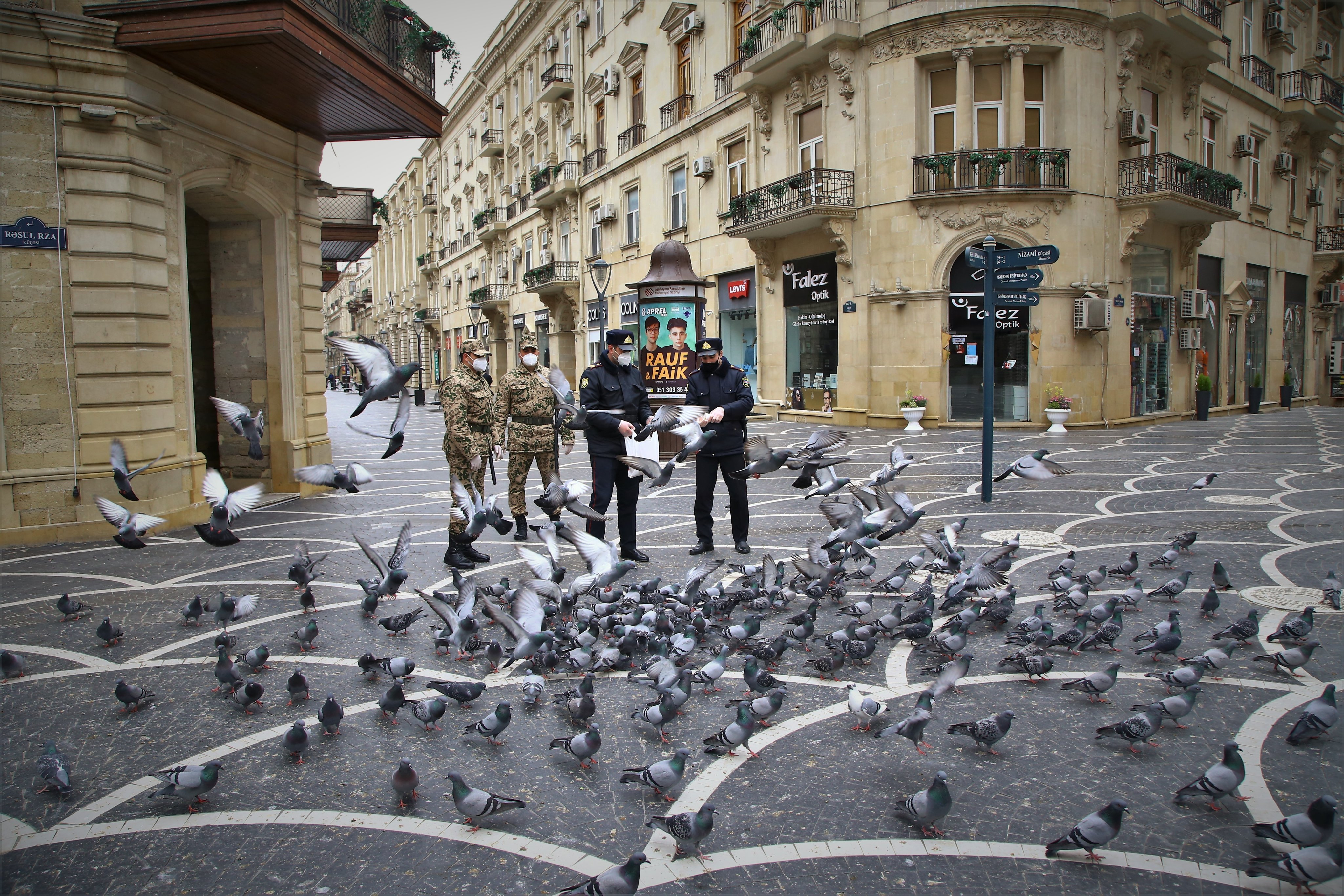 TRT Avaz рассказал о том, как сотрудники полиции кормят голубей на опустевших площадях в Баку – ФОТО