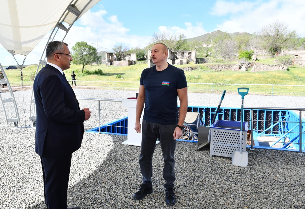 Президент Ильхам Алиев заложил фундамент села Гюлябирд.
