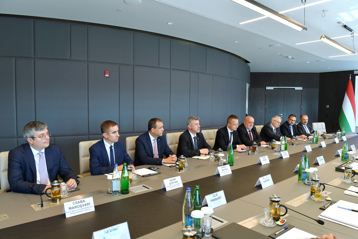 Министр экономики Микаил Джаббаров и президент SOCAR Ровшан Наджаф провели встречу с министром иностранных дел и торговли Венгрии Петером Сийярто.