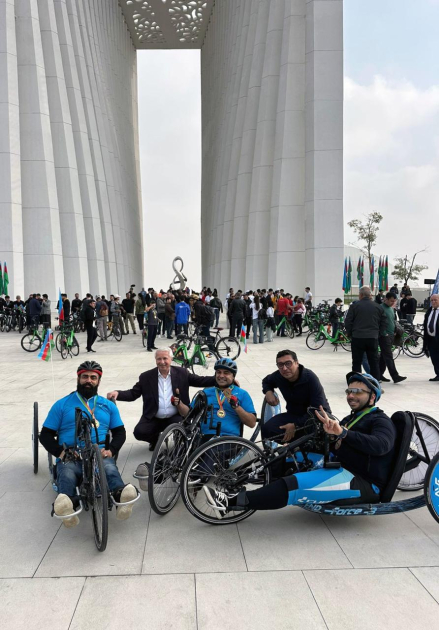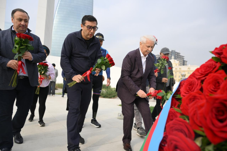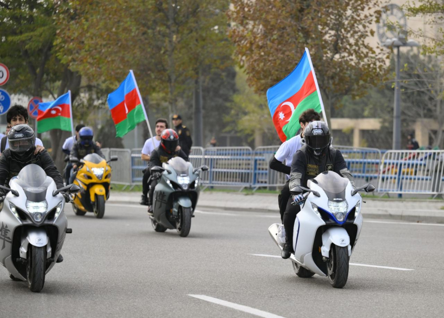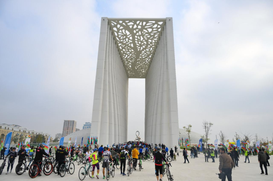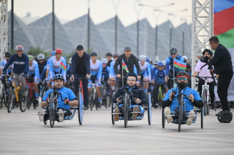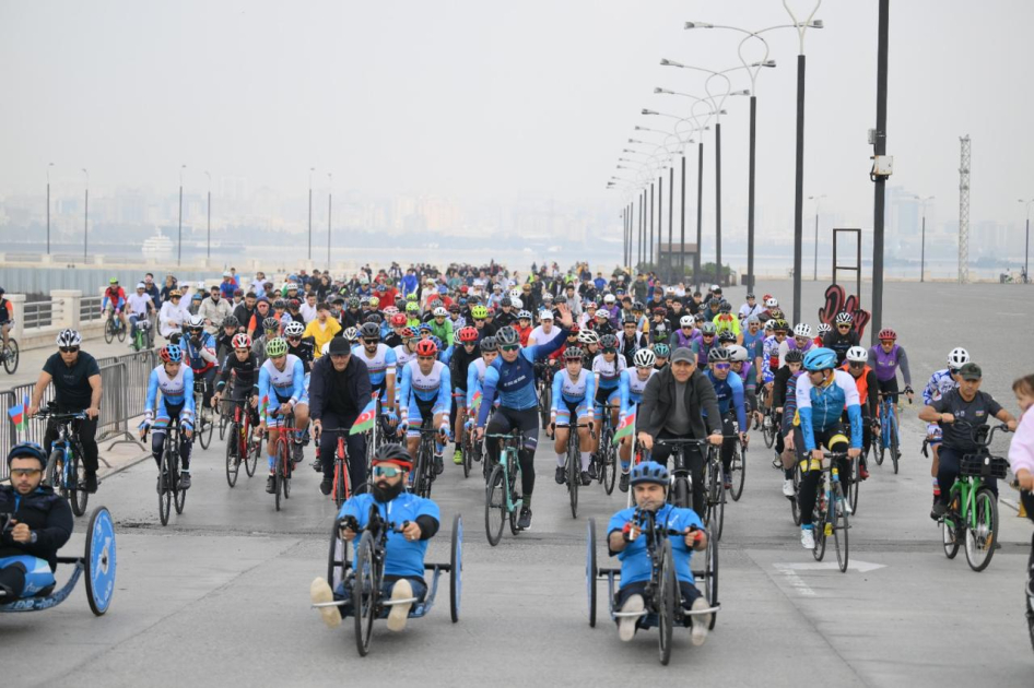 Более 300 профессиональных велосипедистов и любителей, включая паравелосипедистов, проехались по Приморскому бульвару в направлении Парка Победы. От района Crescent Mall до Парка Победы их сопровождали мотоциклисты с флагами Азербайджана.