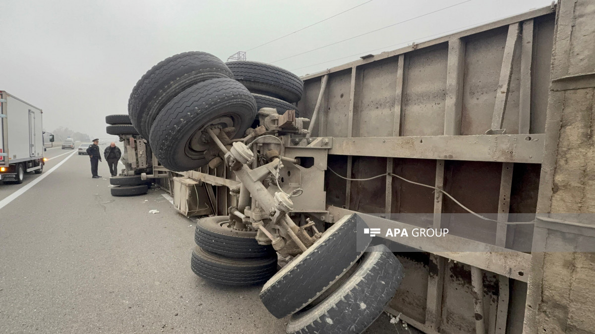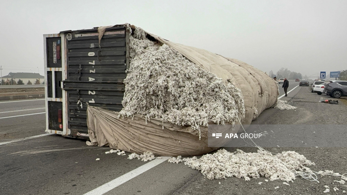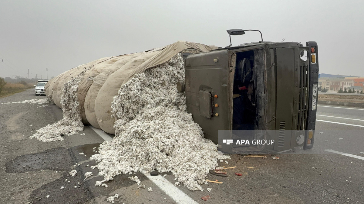 Как передает 1news.az со ссылкой на АПА, инцидент произошёл на участке трассы Баку–Газах, проходящем через село Гарабёрк. Грузовой автомобиль марки "КамАЗ", гружёный хлопком, под управлением жителя Евлахского района Шахина Гусейнова, 1961 года рождения, потерял управление во время движения и опрокинулся на проезжую часть дороги.