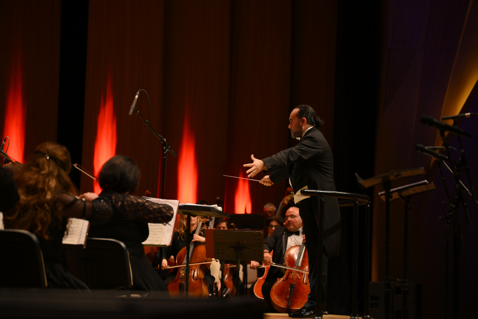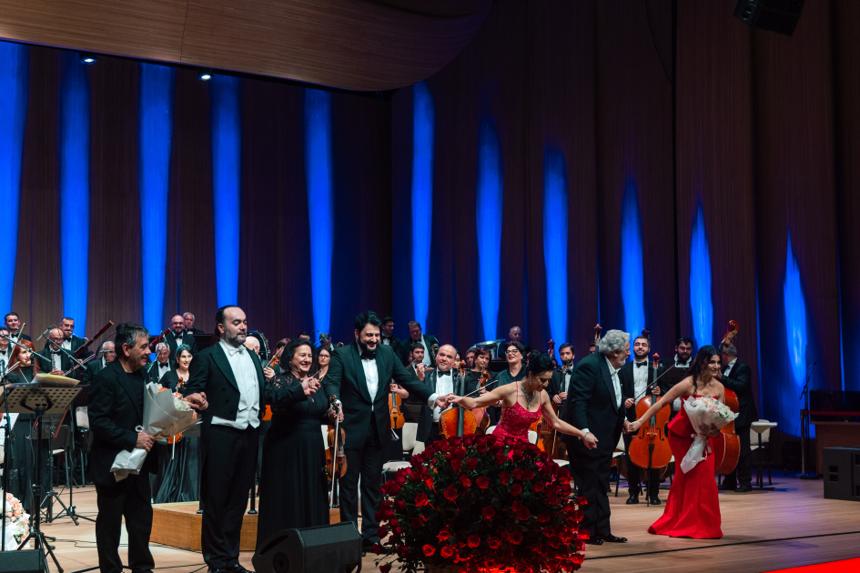 Государственным симфоническим оркестром имени Узеира Гаджибейли, в сопровождении которого выступили артисты, управлял знаменитый итальянский дирижер Франческо Иван Чампа.