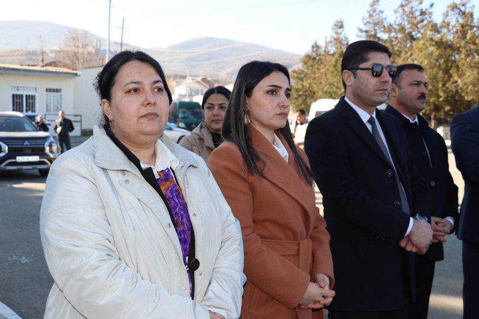 Церемония вручения ключей вернувшимся в родные дома жителям началась с исполнения Государственного гимна Азербайджана, память шехидов была почтена минутой молчания.