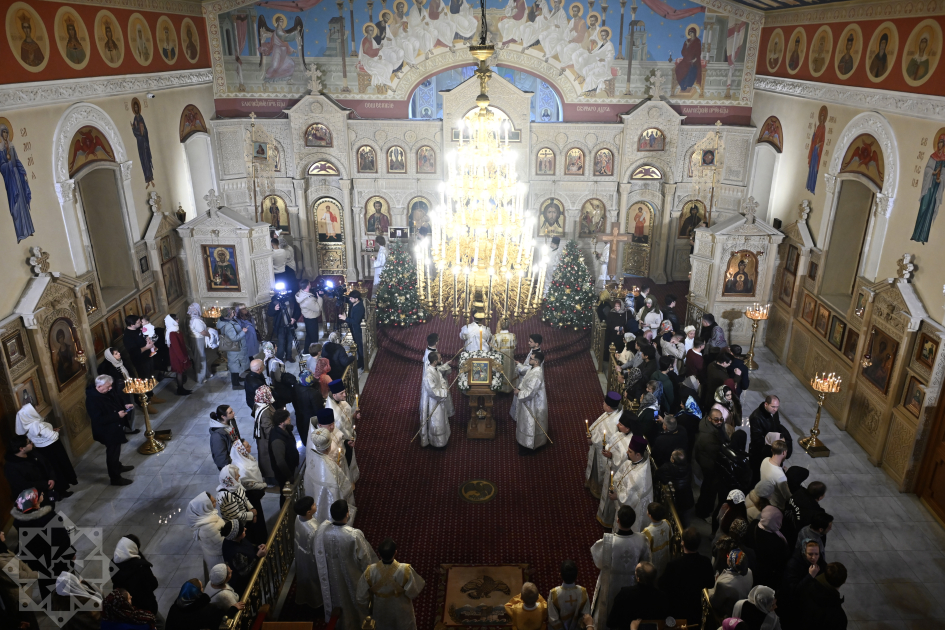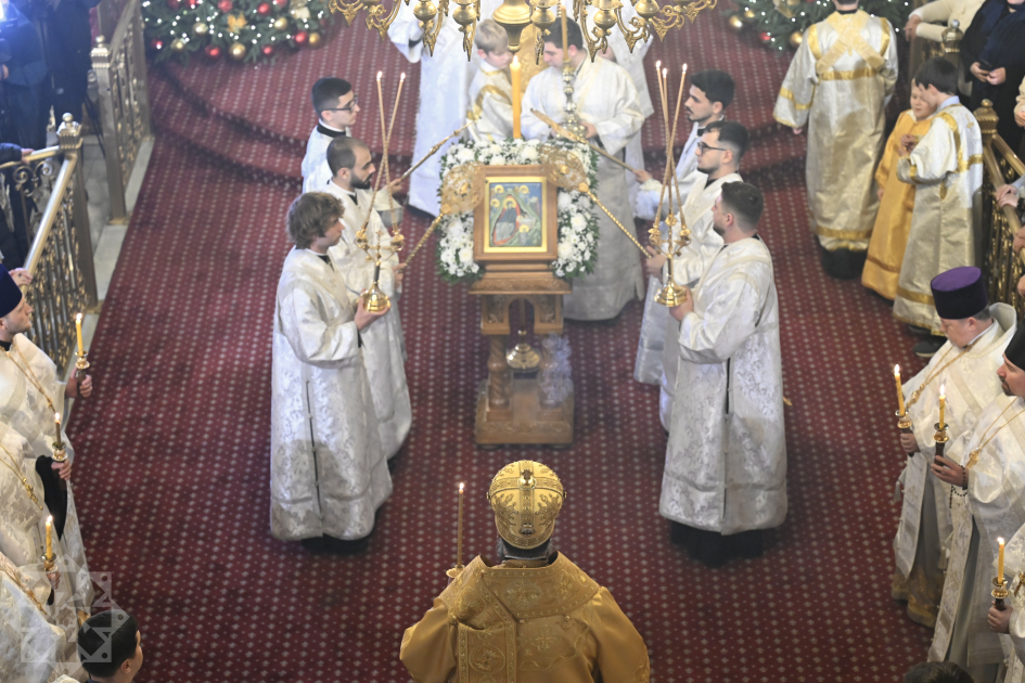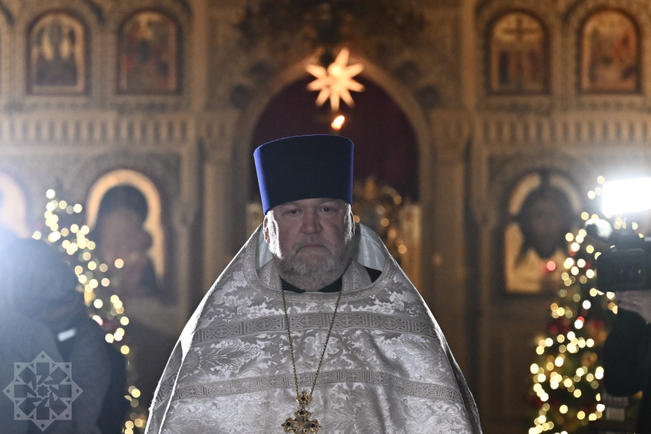 В Рождественскую ночь епископ Алексий совершил Божественную литургию в Кафедральном соборе Святых Жен-Мироносиц.