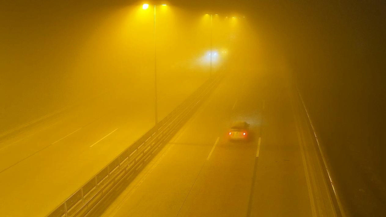 На некоторых дорогах Баку из‑за тумана введено ограничение скорости.