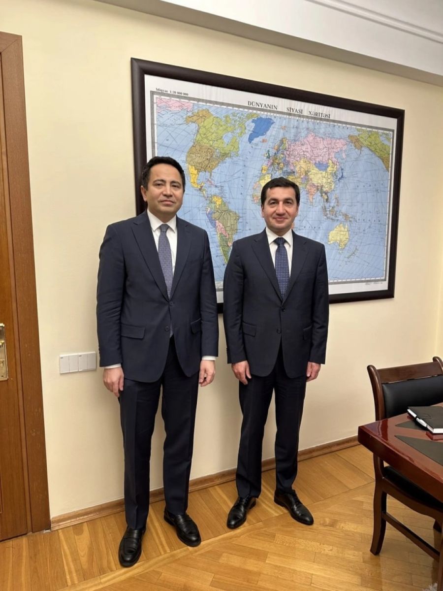 Посол Казахстана в Азербайджане Алим Байель встретился с помощником президента Азербайджана – заведующим отделом по вопросам внешней политики Администрации президента Хикметом Гаджиевым.