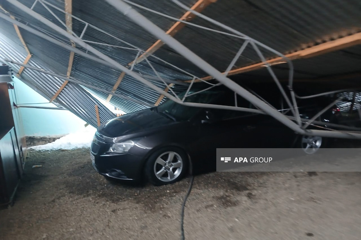 В Газахе под тяжестью снега обрушился навес, повредив автомобили - ФОТО