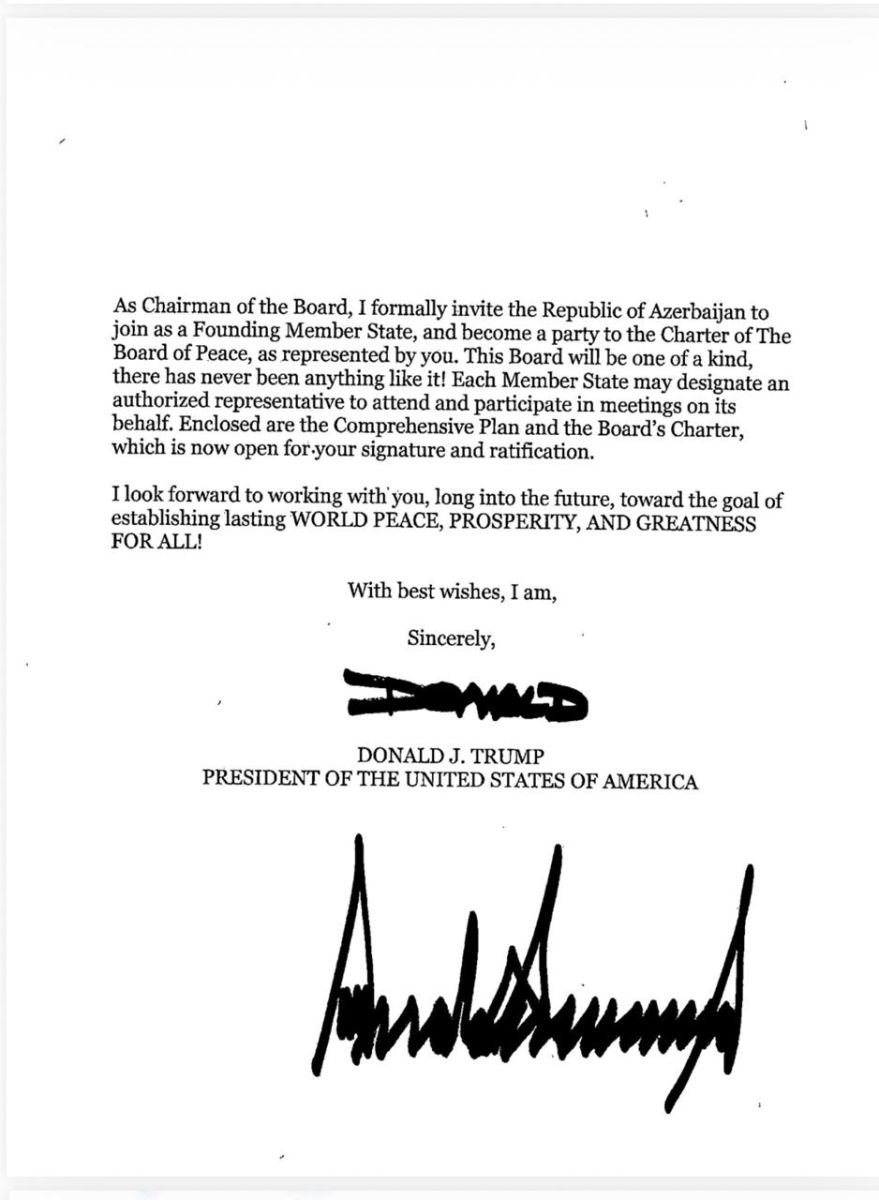 Ответ Президента Ильхама Алиева выдержан в выверенном и содержательном тоне. Принятие приглашения обозначено как знак взаимовыгодного и основанного на взаимном уважении партнерства между Азербайджаном и США, а также как признание роли Баку в продвижении мира и стабильности на региональном и глобальном уровнях. Ильхам Алиев подтвердил готовность Азербайджана присоединиться к «Совету мира», разделяя его миссию прекратить конфликт в секторе Газа и содействовать формированию более безопасного будущего для всех, кто пострадал от этого затянувшегося противостояния.
