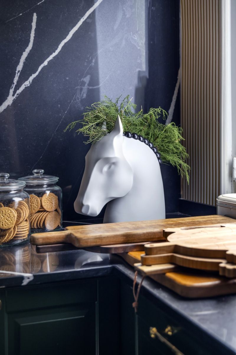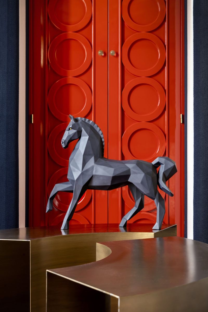 Функциональное переосмысление образа представлено в Horse Vase, где силуэт лошади трансформируется в декоративный объект. Стилизованная форма вручную расписанная черная глянцевая грива придают изделию характер и легкую игривость, объединяя утилитарность с художественным жестом и сохраняя узнаваемый почерк бренда.