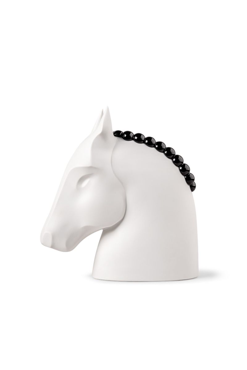 Более мягкое и трогательное настроение задаёт Baby Horse. Эта работа входит в коллекцию Baby Animals, где двенадцать знаков китайского зодиака представлены в легкой, почти сказочной манере. Белоснежный фарфор, сочетание матовых и глянцевых поверхностей, выразительные черные глаза и вручную выполненный декоративный нагрудник придают скульптуре эмоциональную теплоту. В этом образе угадываются черты, традиционно приписываемые рожденным под знаком Лошади: энергичность, независимость и харизма.